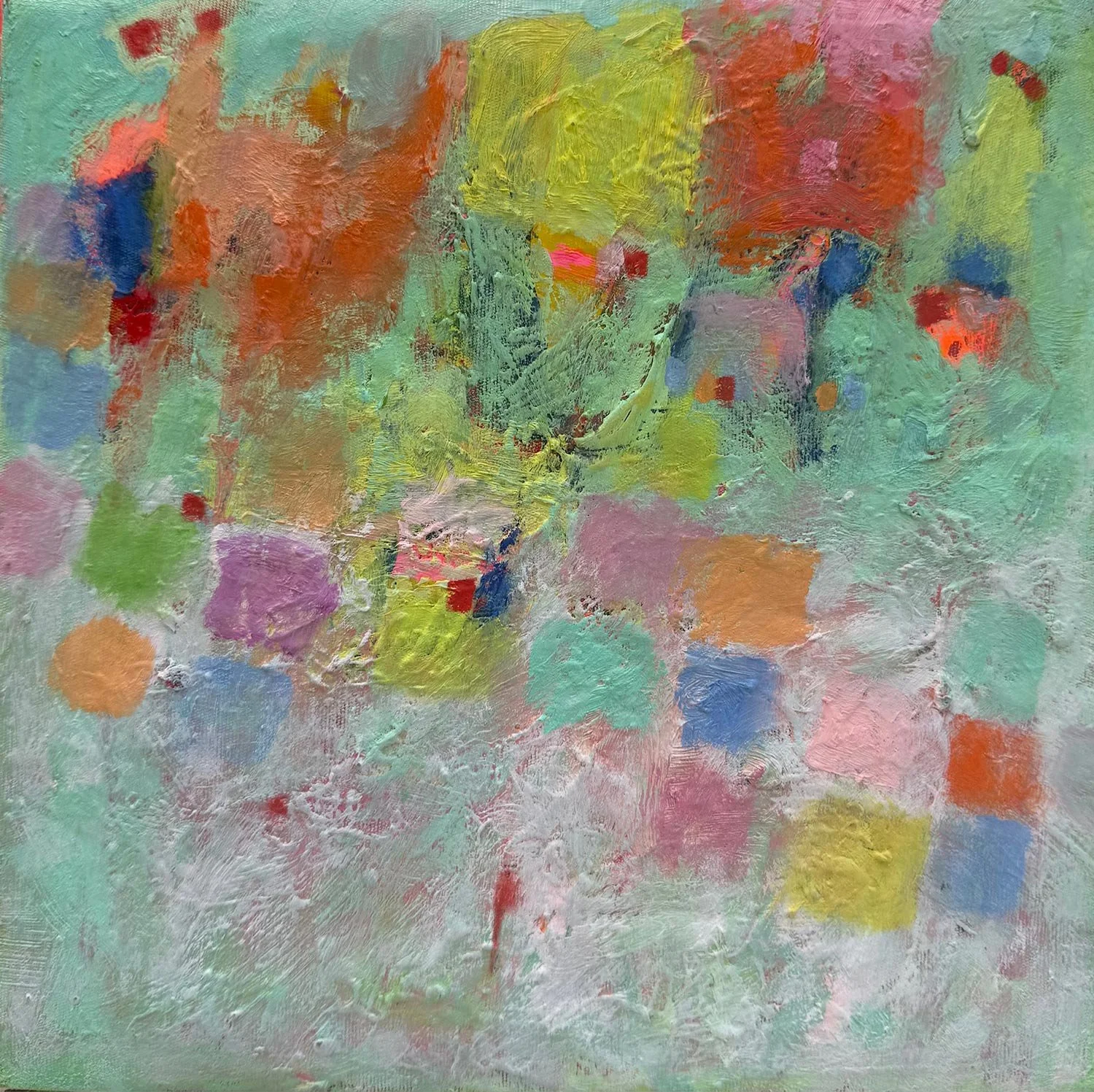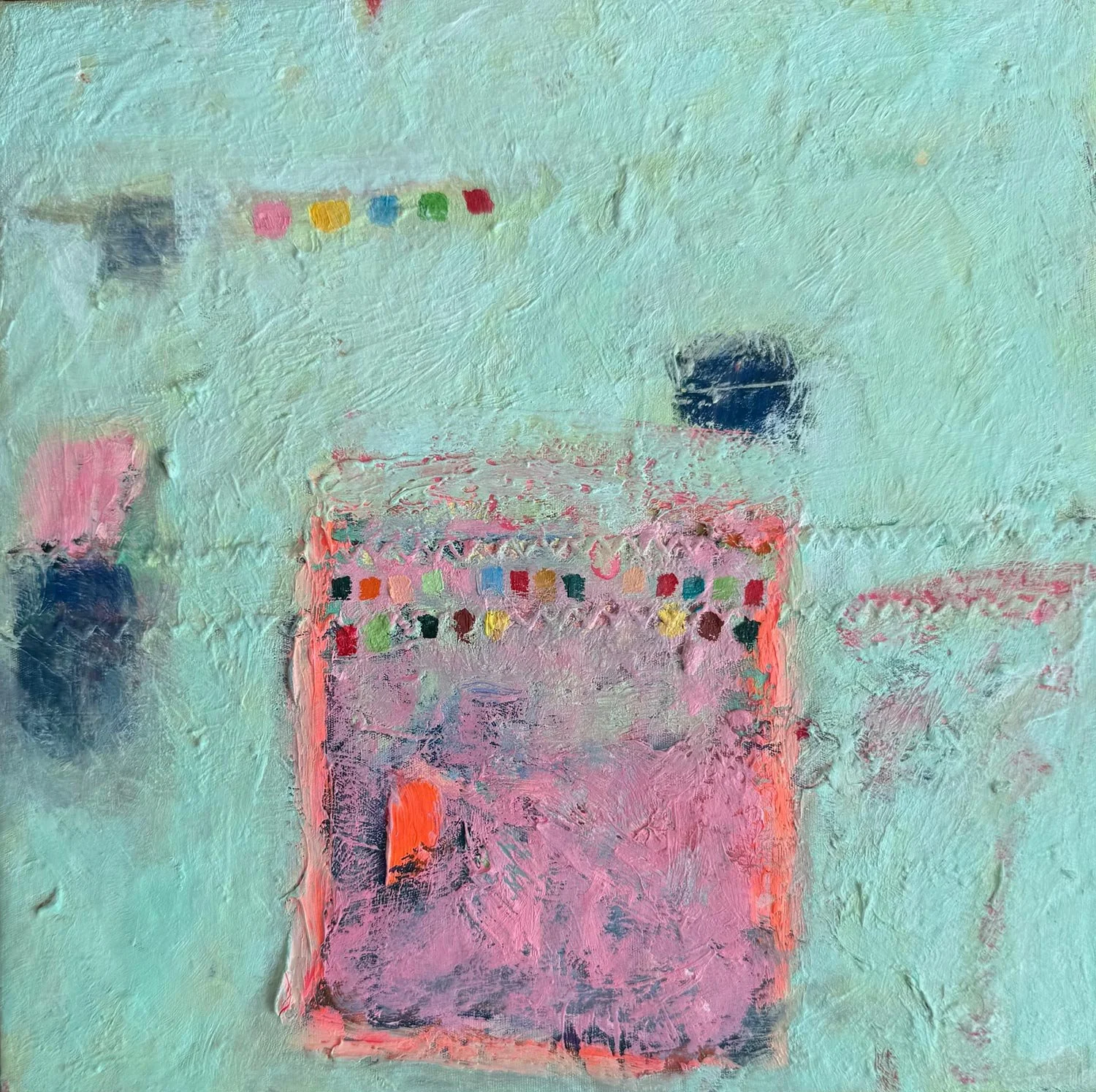 “Showing Up” is about arriving from a place of unexpectedness. There are sudden splashes, quiet surprises, and moments that feel like small miracles. Some elements only emerge later, becoming more visible over time. Paint matters deeply to me, whether oil or gouache, as does the surface itself. My paintings are a doorway into my daily life. I have tried to stop, but I cannot live without it.”