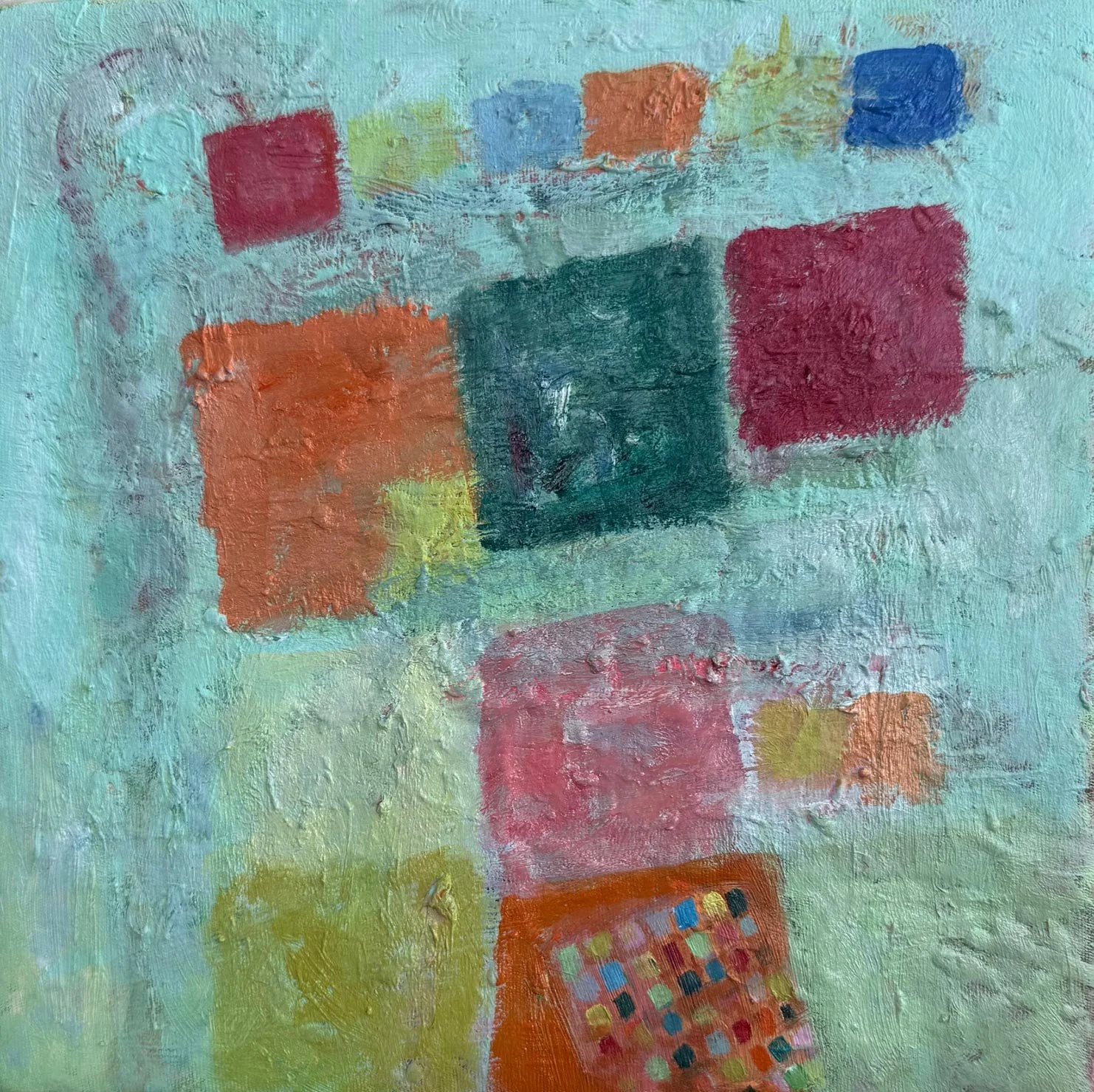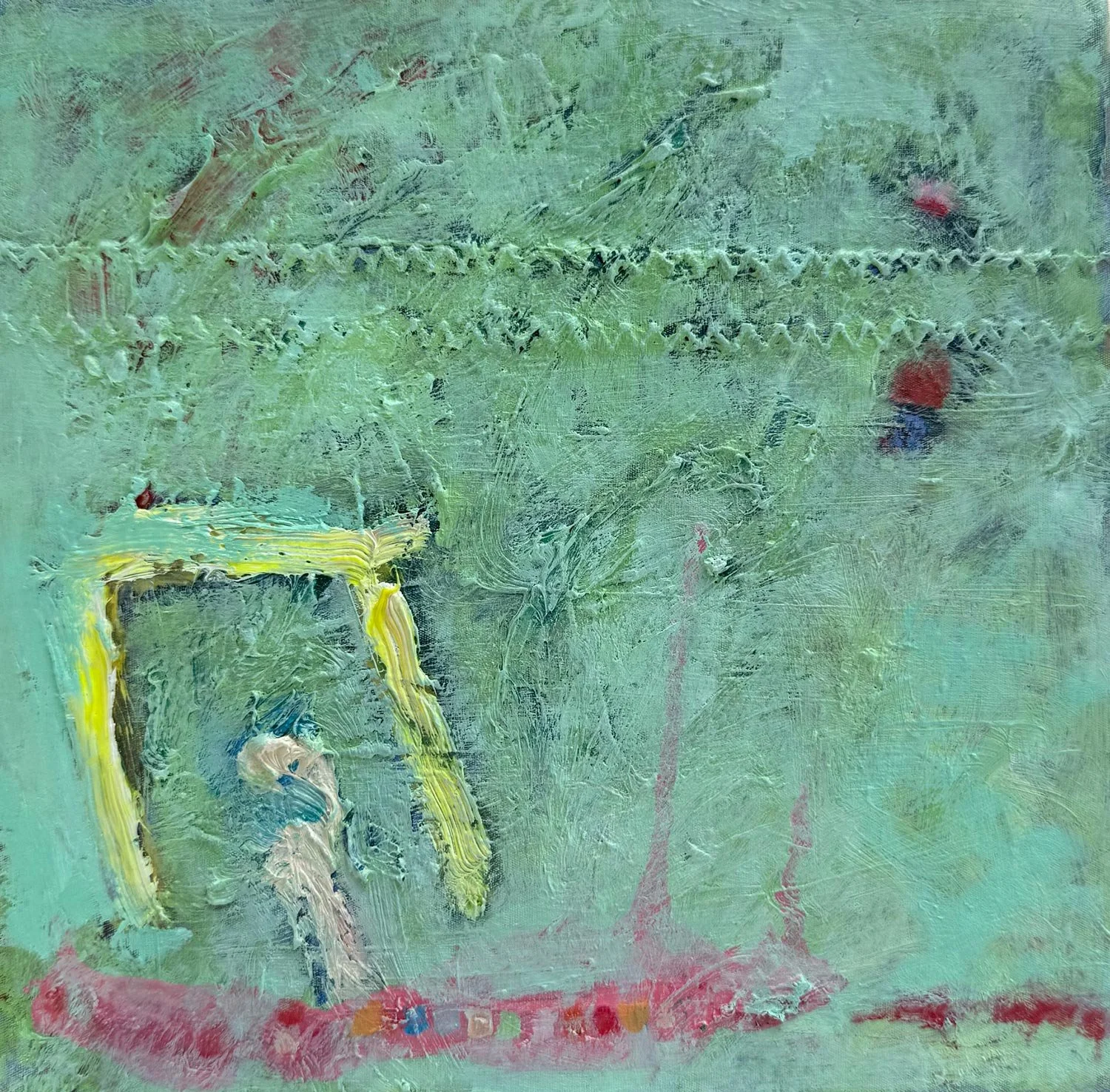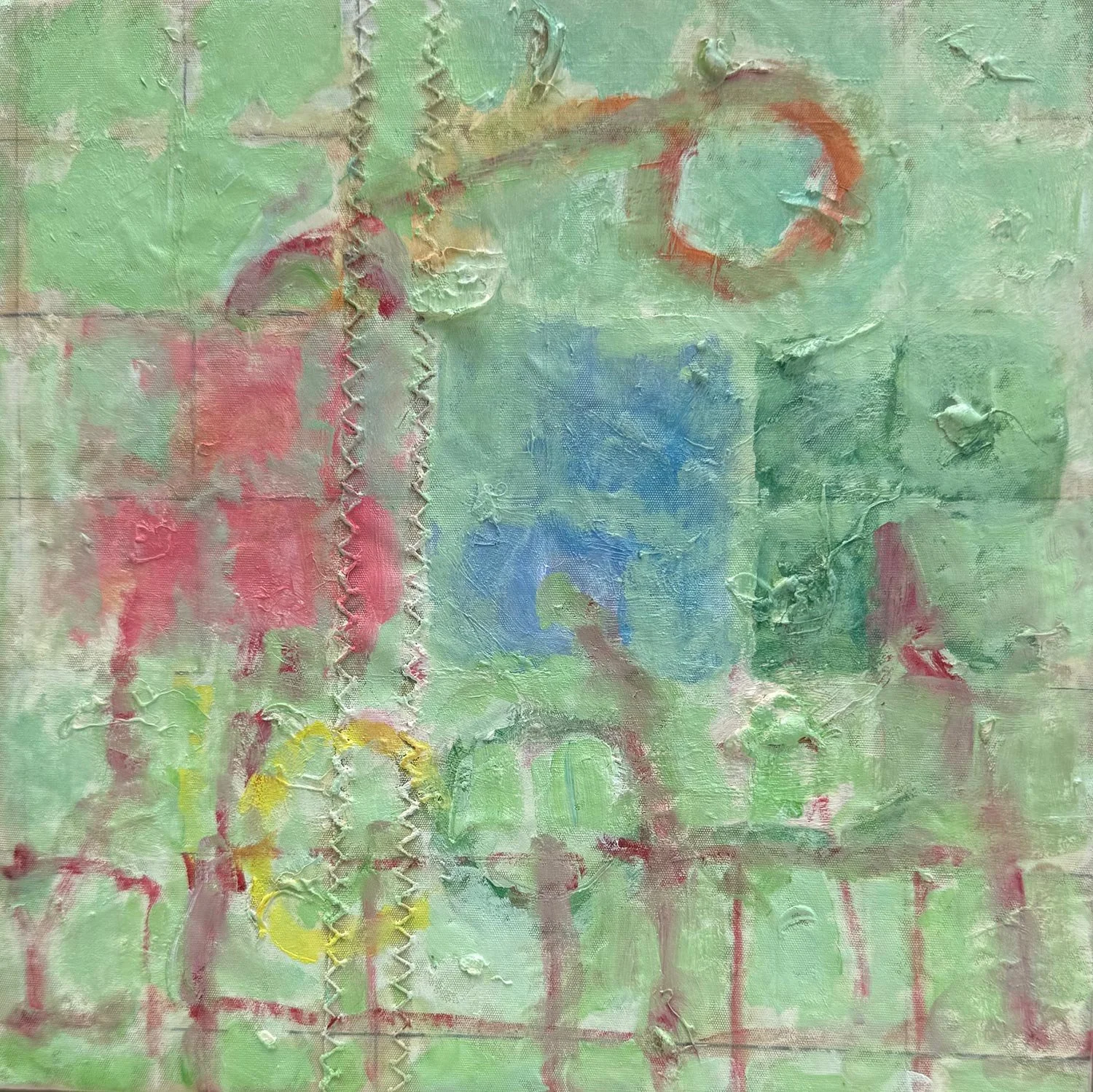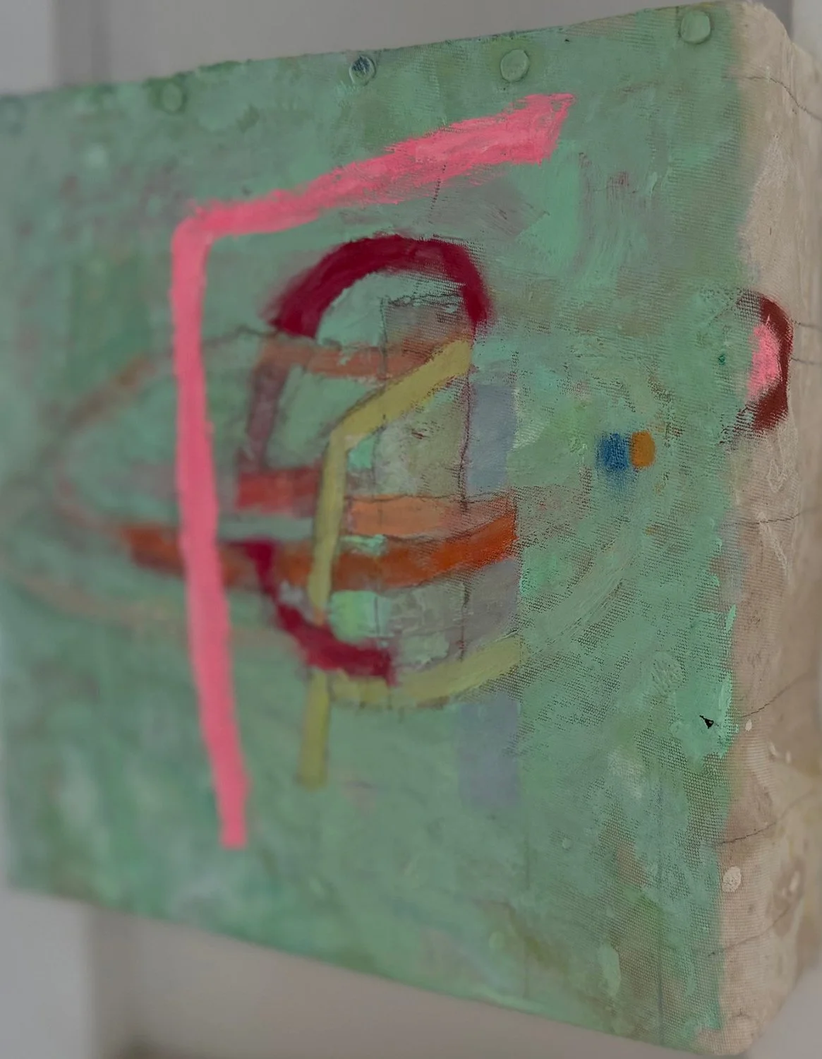 “Showing Up” brings together several series on oil-painted recycled sailcloth, linen, and wooden panels from many years ago. Built-up paint from past trials and experiments that never fully matured remains central to how I work. These pieces hold memories from different stages of my practice. There were many. My joy is in revealing old marks and imagery that quietly reappear, uncovering fragments from years of painting. This is my process. I am drawn to painting over old work.